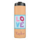 Ce design extraordinaire présente un joli arrière - plan de pêche avec un timbre "Amour" placé au centre. L'estampille affiche le mot "Amour" écrit en caractères bleus, roses et violets. Situé directement en dessous est un modèle pour présenter votre nom. Ajoutez votre photo ou tout autre élément au design. Ajoutez ce chaudière thermique à votre panier dès aujourd'hui ! Clipart de Huckleberry Hearts, LLC, © www.Huckleberry-Hearts.com