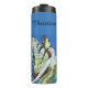 Cette bouteille thermale de tondeuse pour garder vos boissons froides ou chaudes a une belle fée avec les cheveux rouges et les ailes monarques papillon en robe dorée sous un ciel bleu. Customisez votre nom avec le modèle.