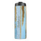 Chic Thermal Tumbler, avec des graphismes d'un bleu ciel et d'or feuille et parties scintillant à l'aspect motif à bande verticale. Personnalisez le texte du script en fonction de vos besoins. Super idée cadeau pour elle.