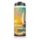 Une peinture numérique d'un voilier en mer. Bouteille isotherme
