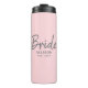 Restez hydraté avec style avec ce Bride moderne rose Gris Script Nom Personnalisé Thermal Tumbler. Il est conçu avec "mariée" en lettres modernes brossées grises. Personnalisé avec le nom de la mariée et l'année établie du mariage. Arrière - plan rose vif personnalisable. Idée cadeau idéal pour la douche nuptiale, la soirée bachelorette ou la lune de miel.