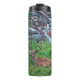 Photo d'un cerf mâle posé dans l'herbe et les fleurs sauvages qui poussent au milieu d'un mur naturel de pierre dans une forêt. Cette photo de gros plan d'un cerf mâle est la même que dans ma photo intitulée, 'Un canard repose sur une rivière en cascade'. Copyright© 2018 Kimberly J Tilley.