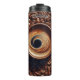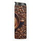 Cette illustration unique, vue d'en haut, présente une tasse de café avec un liquide tourbillonnant foncé à l'intérieur. La tasse est nichée dans un motif de grains de café très détaillé et stylisé, dont certains sont disposés en forme fluide et organique. Les tons bruns riches créent une composition chaleureuse, accueillante et artistique.
