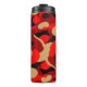 Le rouge, le noir, le beige et le cerisier foncé se marient dans un décor camouflé. Motif urbaine moderne, brillante et féminine.