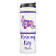 Cocker Spaniel chien animal de compagnie silhouette violet, rose, jaune et bleu motif abstrait numérique. Ce tumeur thermique est sûr de mettre un sourire sur n'importe quel visage amoureux des chiens. De plus, c'est écologique, donc elle peut le garder pendant des années. Changez "I love my dog"/"Nom" avec le texte que vous aimez des deux côtés de la bouteille.