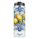 Amalfi Coast Italy Méditerranéen Citron thermo tumbler, avec tuiles bleues, citron et cadre bleu. cadeau parfait pour un mariage. Bellissima Italia © Vous pouvez personnaliser avec vos noms. Vous pouvez modifier la couleur du texte et le style de police à l'aide de l'option customiser. VEUILLEZ NOTER : Les couleurs affichées en ligne peuvent varier légèrement du produit réel.