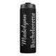 Commencez la fête avec ces mignonettes thermiques qui sont faciles à personnaliser pour votre bachelorette, la nuit ou le week-end des filles! Le style minimaliste moderne est doté d'un nom personnalisé avec des lettres audacieuses sur un arrière - plan noir. Personnalisez avec deux lignes de texte personnalisé. Tout le texte et la couleur arrière - plan peuvent être modifiés selon votre goût.