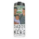 Daddy Hero Typographie Fête des Pères Photo Tumbler Thermal. Le texte est en polices simples dessinées à la main. Vous pouvez changer papa en papa, papa, papa, pap,... et ajouter vos noms. Ajoutez votre photo. Un cadeau mignon et un doux souvenir pour la fête des pères pour papa.