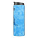Cette bouteille thermale tumbler pour garder vos boissons froides ou chaudes a un amusant escargot de dessin animé fait dans les tons bleu aqua avec de grands yeux ronds sur un arrière - plan à motif bleu aqua. Customisez votre nom avec le modèle.