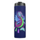 Ce tumeur thermique a un dragon d'eau détaillé dans les tons fuchsia, rose, vert, bleu et violet sur un arrière - plan bleu foncé. Le bac parfait pour les amateurs de course de bateaux-dragons.