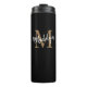 Stylish Black Gold Monogram Girly Script Fitness Thermal Tumbler. Personnalisez facilement ce tondeuse thermique de fitness moderne et élégant avec votre monogramme et nom personnalisés.