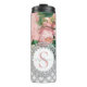 Élégant rose Roses Diamants Monogramme Thermal Tumbler. Design ultra luxueux avec roses roses sur un design arrière - plan touffu. Le design comprend un monogramme personnalisable et un nom entouré de beaux diamants scintillants. Idéal pour mettre votre argent de poche !