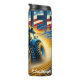 Cette oeuvre dynamique présente un puissant tracteur bleu avec des phares brillants cultivant un champ doré. Dans l'arrière - plan, deux silos se dressent contre un ciel dramatique rempli de nuages sombres et de éclairs, suggérant une tempête ou une activité intense. Ci-dessus, le mot "FARMER" est écrit avec audace, incorporant les étoiles et les rayures du drapeau américain dans sa conception.