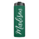 Un chasseur vert verdoyant avec monogramme blanc pour une fille ou un gars qui aime des cadeaux simples et manuscrits pour Noël. Beau script cursif sur le flanc de votre bouteille qui épelle votre nom.