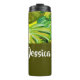 Ajoutez votre nom sur ce feuille de palmier peint en vert sur arrière - plan jaune.