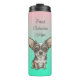 Chien mignon Chihuahua avec de grands yeux illustration. Citation sur le dos de la tasse dit, "Froud Chihuahua Maman" mais vous pouvez personnaliser pour dire ce que vous voulez. dégradé rose à turquoise.
