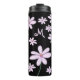 Une mignonne fleur rose pâle dans un motif aléatoire, sur un arrière - plan noir. Personnalisez avec une initiale.