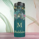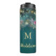 Une aquarelle fantaisiste de feuillage vert émeraude luxuriant, accentuée de teintes rose, fuchsia, mauve et violet, éclaire de lumières féériques et d'une touche de poussière magique. Cette bouteille d'eau monogramme personnalisée enchanteresse par son thème forestier enchanté avec un cadre délicat de roses en rose, violet et mauve et un monogramme classe, ainsi qu'un modèle pour le nom en joli calligraphie. Cette bouteille d'eau personnalisée élégante et moderne est parfaite pour un anniversaire de conte de fées, une douche nuptiale, un baby shower ou un mariage, un cadeau de Noël pour maman, grand-mère ou votre meilleur ami, ou un cadeau d'anniversaire, idéal pour ceux qui adorent un cadre forestier magique, des thèmes de jardin féerique, ou la beauté intemporelle du vert émeraude, du mauve et de l'or.