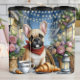 Ce dessin exquis représente un mignon chiot français Bulldog assis à une table de café en plein air. Il porte un bandana rouge et regarde doucement, avec une tasse de café et un croissant devant. La nuit, l'arrière - plan présente un charmant décor de rue parisien, orné de lampes à cordes et de fleurs, évoquant une atmosphère chaleureuse et accueillante.