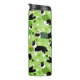 Joli St. Patrick's Day Border Collies portant de nombreuses nuances de vert avec des pulls rayés et cardiaques avec quatre trèfles éparés et des os de chien sur un arrière - plan vert.