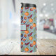 Ce tourbillon thermique de grenade, d'orange et de fougères présente un motif extensible, semblable aux textiles vintages britanniques de 1800. Les couleurs rétro comprennent l'orange, le violet de prune et les fougères vertes sur un arrière - plan bleu poussiéreux. Ce tumbler est destiné à être personnalisé avec votre nom ou tout autre texte souhaité. Assurez-vous de taper le texte souhaité dans la section Personnaliser.