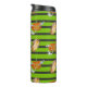 Ce tumeur présente des cercueils d'aquarelle et des lanternes de jack o' avec des fantômes qui sortent sur un arrière - plan amusant vert et gris foncé rayé. Idéal pour le café de saison Éffrayante ou le thé chaud!