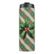 Holly et Berries sur blanc et vert Noël Plaid Thermal Tumbler Travel Mug.