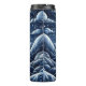 Cette image représente une silhouette de loup majestueux contre une lune pleine et lumineuse, hurlant au-dessus d'un paysage montagneux bleu stylisé. Le ciel nocturne est rempli d'une lueur céleste, d'étoiles étincelantes et de formations nuageuses qui améliorent la qualité onirique de la scène. Les montagnes sont rendues avec des motifs complexes et ondulés, leur donnant une texture unique.
