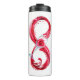 Infinity symbole of continuous stream of red pouring into glass glass glass on white background.