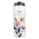Bouteilles Isothermes Joyeux anniversaire, nom, Fleurs sur blanc