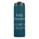 Thermal Tumbler avec latitude et longitude coordonnées carte pour la US Naval Air Station NAS Jacksonville en Floride Roboto style police blanche sur arrière - plan bleu marine.