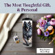 Un Tervuren belge vivant, à l'expression joyeuse et à bouche ouverte, traverse énergiquement un jardin de tournesols, de pivoines roses et de fleurs violettes. Lavages d'aquarelle pastel doux et délicats accents floraux rehaussent l'atmosphère dynamique et joyeuse de ce portrait canin.