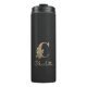 Élégant tumeur thermique noire avec un monogramme botanique en or au centre.