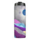 Un magnifique paysage abstrait avec une lune bleue et des collines ondulées colorées et texturées dans les tons violet, violet, bleu, cyan et jaune.