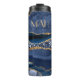 Bleu tendance avec parties scintillant dorée agate marbre monogrammed thermo tumbler. Chambre pour trois initiales ou un nom court.