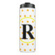 Pois orange sur arrière - plan blanc. Personnalisez avec votre initiale monogrammée en texte noir au centre du cercle jaune. Cercles géométriques branchés sur tumblers pour votre style unique. Amusant pour tous ceux qui aiment les points. Conception originale © TamiraZDesigns. www.zazzle.com/tamirazdesigns