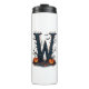 A striking Halloween illustration featuring a spooky, oversized letter 'W' formed from dark, gnarled tree trunks and branches. The 'W' is silhouetted against a bright, ominous orange full moon, with two black bats flying across the light. At the base, two grinning jack-o'-lanterns sit among scattered orange leaves and wispy grass, adding a warm glow to the dark, eerie composition.