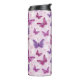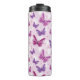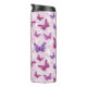 motif sans pareille de papillons volants dans les tons roses et violets avec des fleurs blanches sur un arrière - plan rose pâle. © et ® Bigstock® - Tous droits réservés.