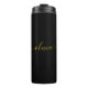 Tumbler de boisson Nom de monogramme écriture simple Noir et Or. C'est le cadeau parfait pour un anniversaire sweet 16, un mariage, une douche de mariée, un anniversaire de mariage, une baby shower ou une soirée d'enterrement de vie de jeune fille pour quelqu'un qui aime le luxe glamour et les styles chics.