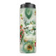 It has a repeating pattern with a soft, faded color palette, mostly in shades of mint green, white, and muted reds/golds.