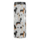 De mignons bergers allemands en noir et tan, noir et rouge, noir et argent, blanc et dos couleur manteaux s'assoient et se tiennent avec des os de chien éparpillés et des empreintes de pattes sur un arrière - plan gris clair.