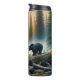 Cette image captivante présente un majestueux ours noir qui se fraye un chemin à travers un arbre tombé, encadré par une cathédrale de verdure verdoyante. Alors que la lumière dorée du lever du soleil pénètre dans la brume matinale, elle jette une lumière douce et éthérée qui donne vie à la forêt.