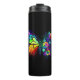 Arc en ciel, papillon monarque lumineux, artistiquement peint avec bouquet de roses irisés, lumineux, lumineux sur arrière - plan noir. Papillon arc-en-ciel.