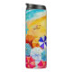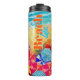 Vagues sur une plage de sable, surfeurs et bronzeurs sous des parasols colorés, ce tumbler thermique personnalisé porte votre nom et "Beach Life" à l'avant et à l'arrière, tout message sur la bande turquoise - nous montrons "RESTER COOL! PEUT CONTENIR QUELQUE CHOSE D'AUTRE QUE L'EAU." Amusant pour l'été, les vacances ou cadeau comme cadeau. CORRESPONDANCE d'objets dans notre collection.
