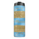 Scénario de parties scintillant en or moderne fille nom personnalisé thermo tumbler avec des traits en métal bleu et or brillant pour un cadeau personnalisé.