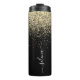 prénom monogramme personnalisé dans un style signature fantaisie sur parties scintillant d'or noir tumbler thermique.