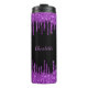 Un élégant arrière - plan noir avec d'élégantes gouttes de parties scintillant violet, la peinture goutte à goutte. Personnalisez et ajoutez votre nom. Le nom est écrit avec un script de style à la main blanc.