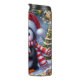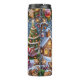 Cette charmante illustration présente un mignon pingouin moelleux portant un chapeau de Père Noël et un foulard rayé. Le pingouin tient un sucre de canne et une tasse de cacao chaud dans un merveilleux pays d'hiver magique avec des maisons en pain d'épices et des arbres de Noël décorés, créant une scène de vacances cosy et adorable.