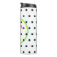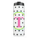 Joli pois noirs sur arrière - plan blanc. Personnalisez avec votre initiale monogrammée en texte rose au centre du cercle bleu jaune. Des cercles géométriques frais et tendance sur des tumblers pour votre style unique. Amusant pour tous ceux qui aiment les points. Conception originale © TamiraZDesigns. www.zazzle.com/tamirazdesigns