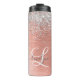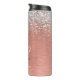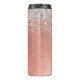 Personnalisez facilement ce design chic et branché de tumblers thermiques avec une jolie parties scintillant brillante en argent sur un arrière - plan métallique brossé en or rose.